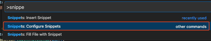 1. Command + shift + p 누르고, snippet 검색 -> Configure Snippets 선택